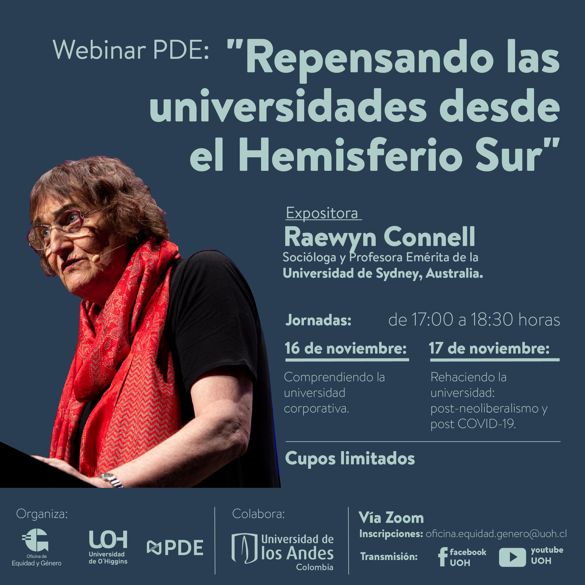 En el marco de su Plan de Desarrollo Estratégico (PDE), la Universidad de O´Higgins invita a participar del webinar “Repensando las universidades desde el Hemisferio Sur”, que contará con la exposición de la destacada socióloga australiana y profesora emérita de la Universidad de Sydney, Australia, Reawyn Connell.